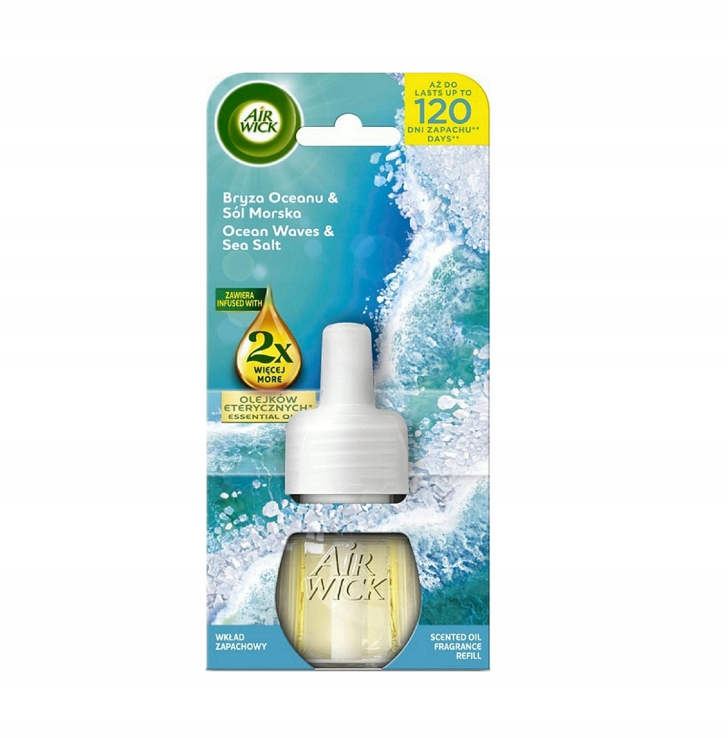 Poczuj powiew świeżości, jakbyś stał nad samym brzegiem morza. Ta orzeźwiająca kompozycja bryzy oceanu połączona z naturalną solą morską wniesie do Twojego wnętrza nutę czystości i lekkości. Wkład zawiera naturalne olejki eteryczne, które zapewniają intensywny i trwały zapach aż do 120 dni przy minimalnym ustawieniu. Przeznaczony do elektrycznego dyfuzora Air Wick, jest doskonałym wyborem dla osób ceniących świeże i morskie aromaty.