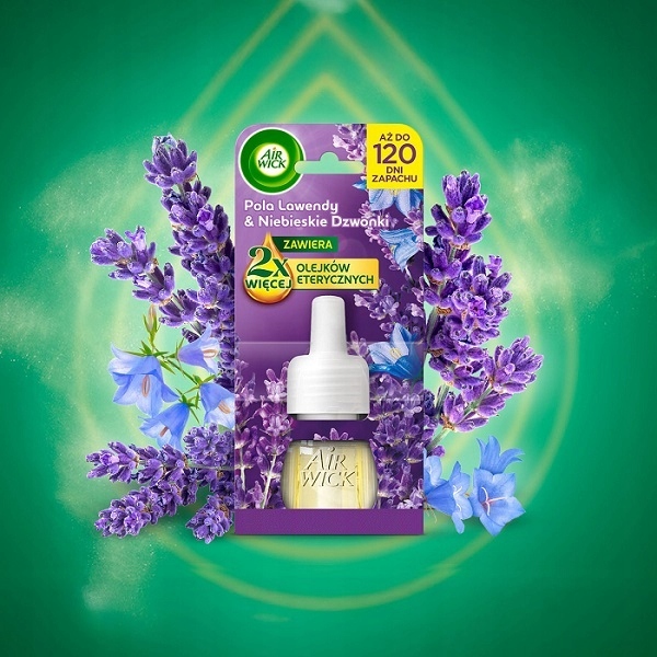Odkryj kojący zapach lawendowego pola z wkładem do odświeżacza powietrza Kompozycja zapachowa oparta na naturalnych olejkach eterycznych przenosi Cię wprost na kwitnącą łąkę pełną fioletowej lawendy. To idealny wybór, jeśli szukasz relaksującej atmosfery w swoim domu. Produkt zapewnia świeżość aż do 120 dni użytkowania (przy najniższym poziomie intensywności).