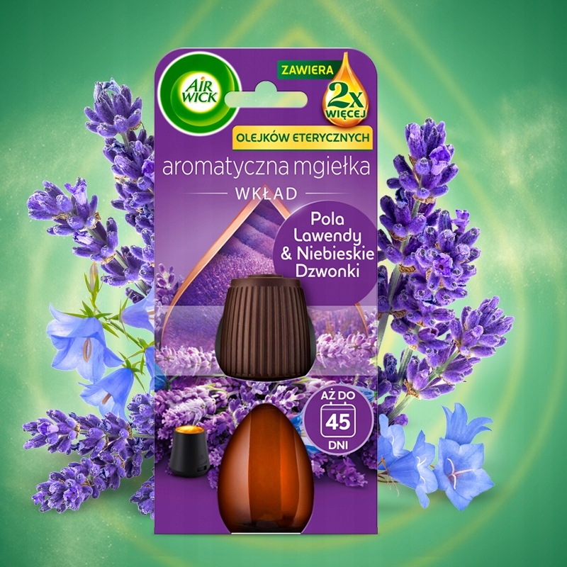 Przed użyciem zapoznaj się ze środkami ostrożności i instrukcją, którą zachowaj. Urządzenie działa na baterie. Wyłącznie dla dorosłych. Nieprzeznaczone do użytku przez dzieci ani osoby o obniżonej sprawności ruchowej, sensorycznej lub umysłowej. WYŁĄCZ URZĄDZENIE PRZED WŁOŻENIEM WKŁADU.Wkłady są wyposażone w nasadkę zabezpieczającą przed dziećmi. Po otwarciu nie przechowuj wkładu poza urządzeniem. Nie zostawiaj go bez nadzoru. Po opróżnieniu wkładu usuń go bezpiecznie z dala od dzieci. Używać w dobrze wentylowanych pomieszczeniach tylko zgodnie z zaleceniami. CHRONIĆ PRZED DZIEĆMI I ZWIERZĘTAMI DOMOWYMI. NIE POŁYKAĆ. Używać wyłącznie z wkładami Air Wick Essential Mist. Używaj tylko baterii alkalicznych. Upewnij się, że bateria jest prawidłowo umieszczona w urządzeniu, zgodnie z oznaczeniami (+) i (-). Jeśli nastąpi jakikolwiek wyciek z baterii, usuń ją i wyczyść dokładnie urządzenie. Jeśli nie zamierzasz używać urządzenia przez dłuższy czas, wyjmij baterię. Jeżeli planujesz ponadtygodniowy pobyt poza domem, wyłącz urządzenie. Chronić urządzenie przed źródłami ciepła, ogniem, urządzeniami elektrycznymi, słońcem i przed nagrzaniem powyżej temperatury 50˚C. Nie używaj jednocześnie baterii używanych i nowych, różnych producentów czy różnych typów. Baterie nie powinny być narażone na działanie wody, ognia czy wysokich temperatur. Nie powoduj spięcia. Nie ładuj baterii. Utylizacja: należy wziąć pod uwagę obowiązujące normy prawne. Wyjąć baterie. Zutylizuj zużyty pojemnik po wkładzie. Urządzenie wyrzuć do odpowiednio oznaczonego kosza. Osoby cierpiące na nadwrażliwość zapachową powinny zachować ostrożność przy stosowaniu tego produktu. Odświeżacze powietrza nie mogą zwolnić z przestrzegania zasad postępowania w zakresie higieny.