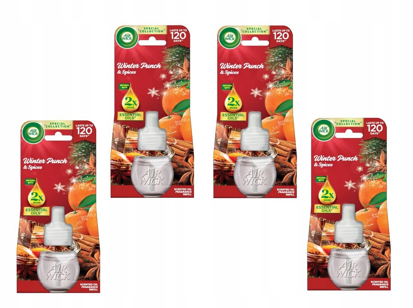 4 x Air Wick Winter Punch Wkład do elektrycznego odświeżacza powietrza 19 ml Aromatyczny Swiąteczny Zapach Pikantnego Ponczu
