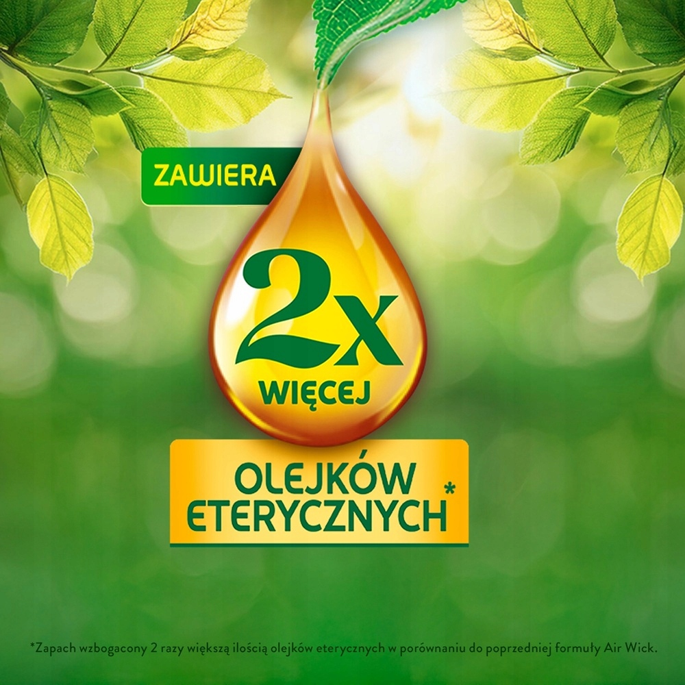 – zapach wzbogacony 2 razy większą ilością olejków eterycznych w porównaniu do poprzedniej formuły Air Wick.