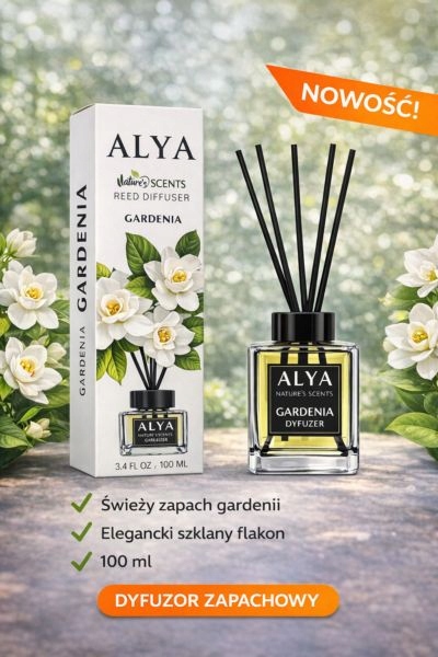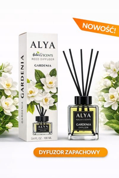 Elegancki dyfuzor zapachowy marki ALYA z patyczkami zapachowymi wypełni Twoje wnętrze subtelnym, kwiatowym aromatem gardenii. To stylowy dodatek do domu, który nie tylko odświeża powietrze, ale również stanowi dekorację pomieszczenia.