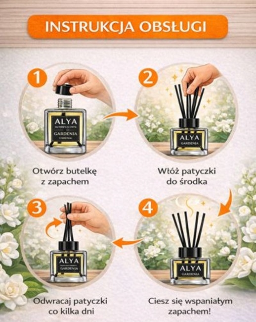 4.Aby wzmocnić zapach, zaleca się odwracać patyczki co 7 dni