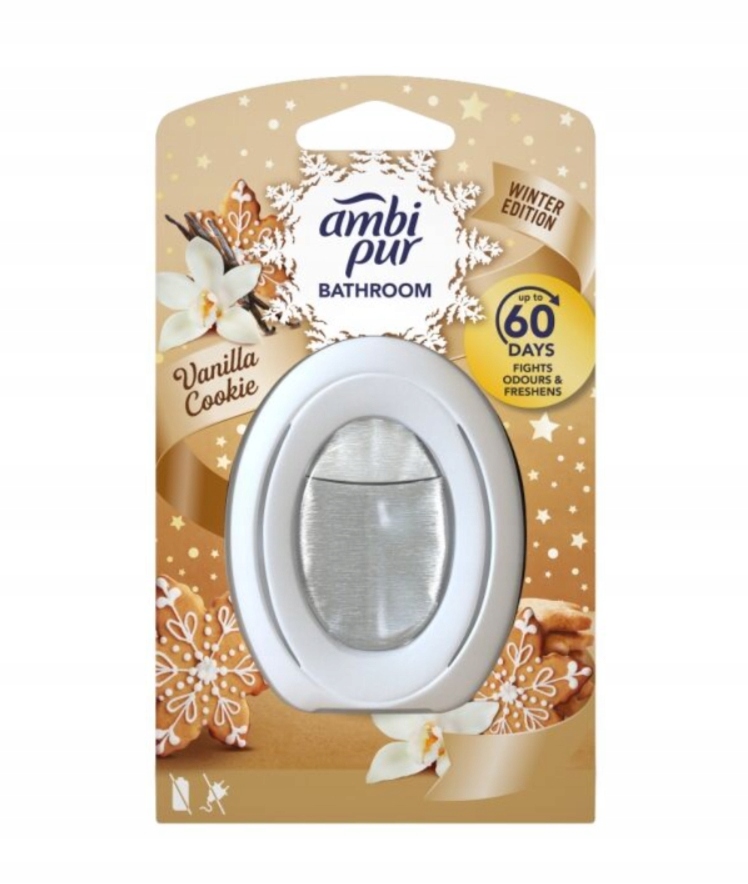 Odkryj wyjątkowy sposób na utrzymanie świeżości w Twojej łazience dzięki odświeżaczowi powietrza Ambi Pur o zapachu waniliowego ciasteczka.