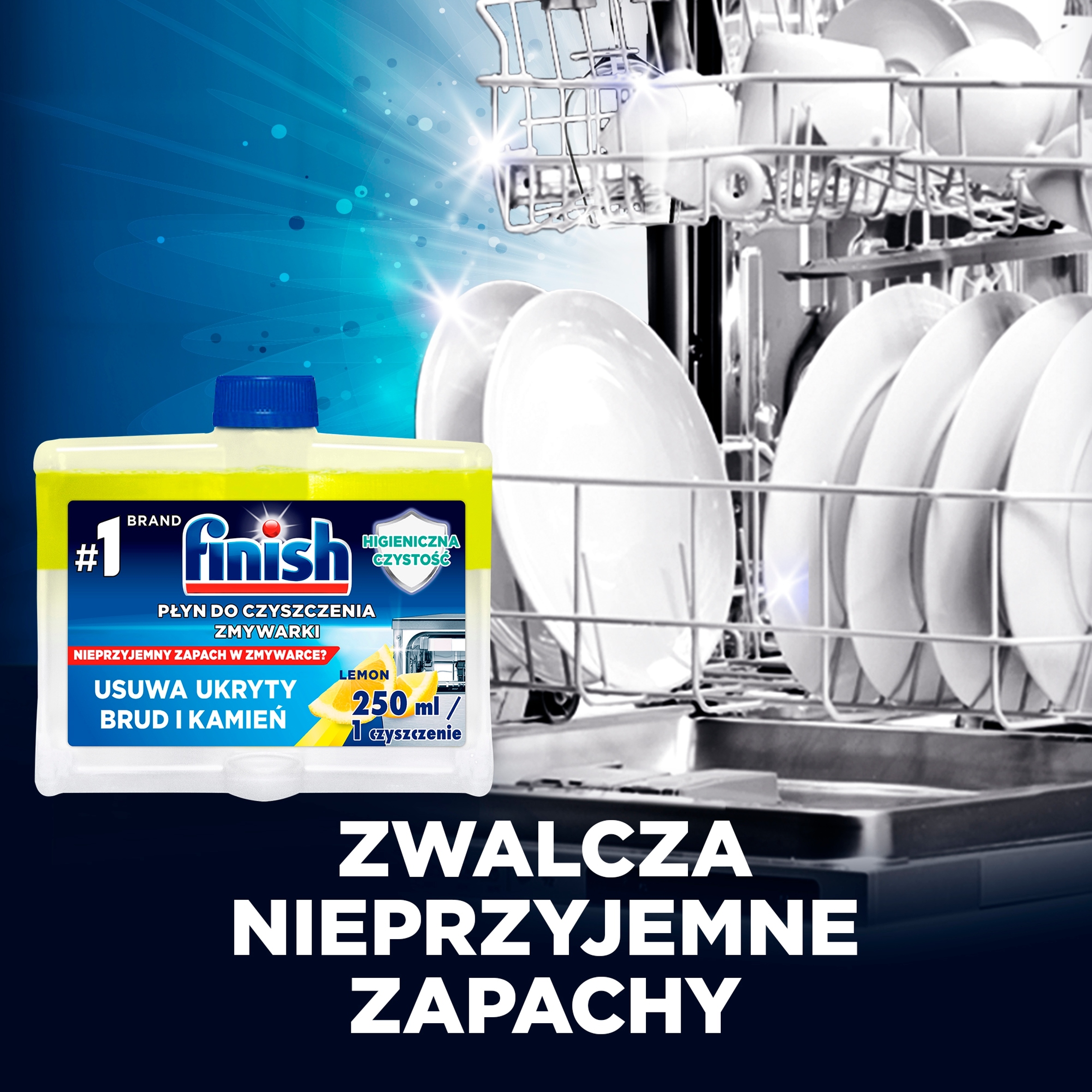Zmywarka to ważny element w Twojej kuchni. Czy tak samo jak dbasz o brak zabrudzeń na talerzach, myślisz też o czystości samego urządzenia? Tylko pozbawiona zabrudzeń zmywarka jest w stanie wyczyścić Twoje naczynia w 100%. Na szczęście z płynem do czyszczenia zmywarki FINISH Hygienic Clean Lemon 250 ml czyste będą i talerze, i zmywarka.