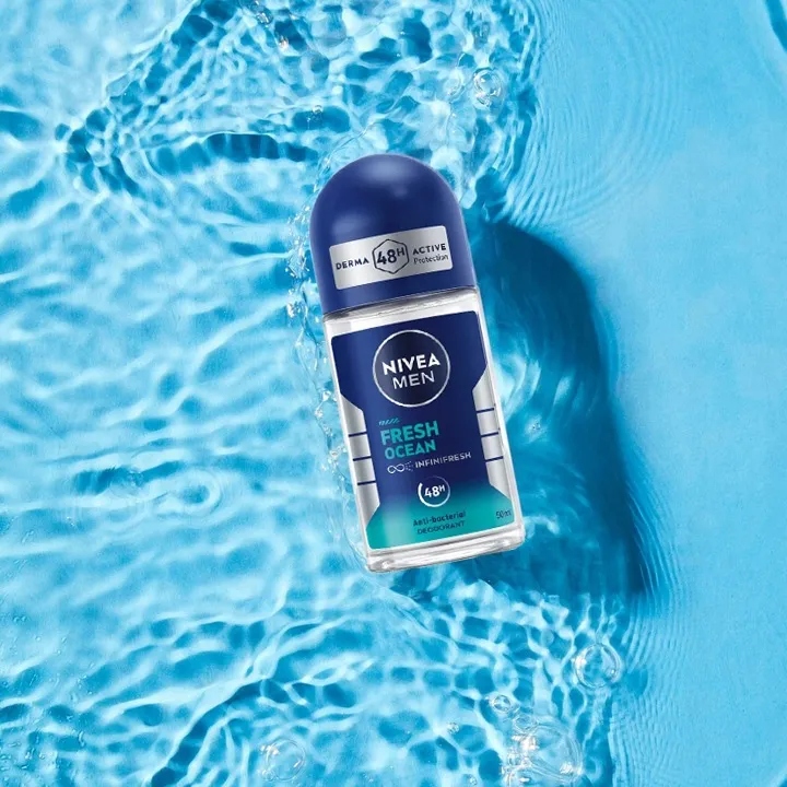 NIVEA MEN Fresh Ocean Dezodorant roll-on to skuteczna ochrona i długotrwałe uczucie świeżości dla mężczyzn, którzy cenią komfort przez cały dzień. Lekka formuła szybko wysycha na skórze, zapewniając niezawodną ochronę przed nieprzyjemnym zapachem nawet do 48 godzin.