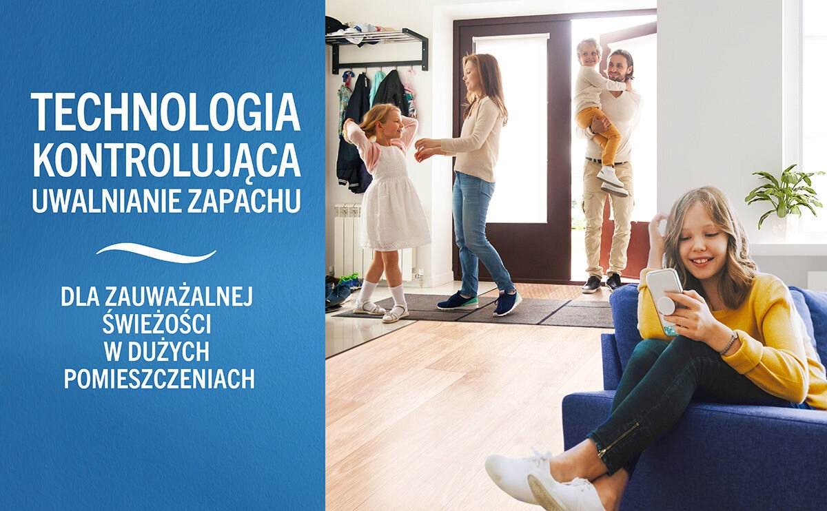 Niezależnie od wielkości pomieszczenia, AMBI PUR 3Volution zadba, aby przyjemny zapach unosił się w każdym kącie. To pierwsze urządzenie z inteligentną technologią kontrolującą uwalnianie zapachu, która każdego dnia zapewnia optymalny poziom świeżości w całym pomieszczeniu. AMBI PUR 3Volution nie boi się wyzwań, wypełni Twój dom świeżością, gdziekolwiek zapragniesz.